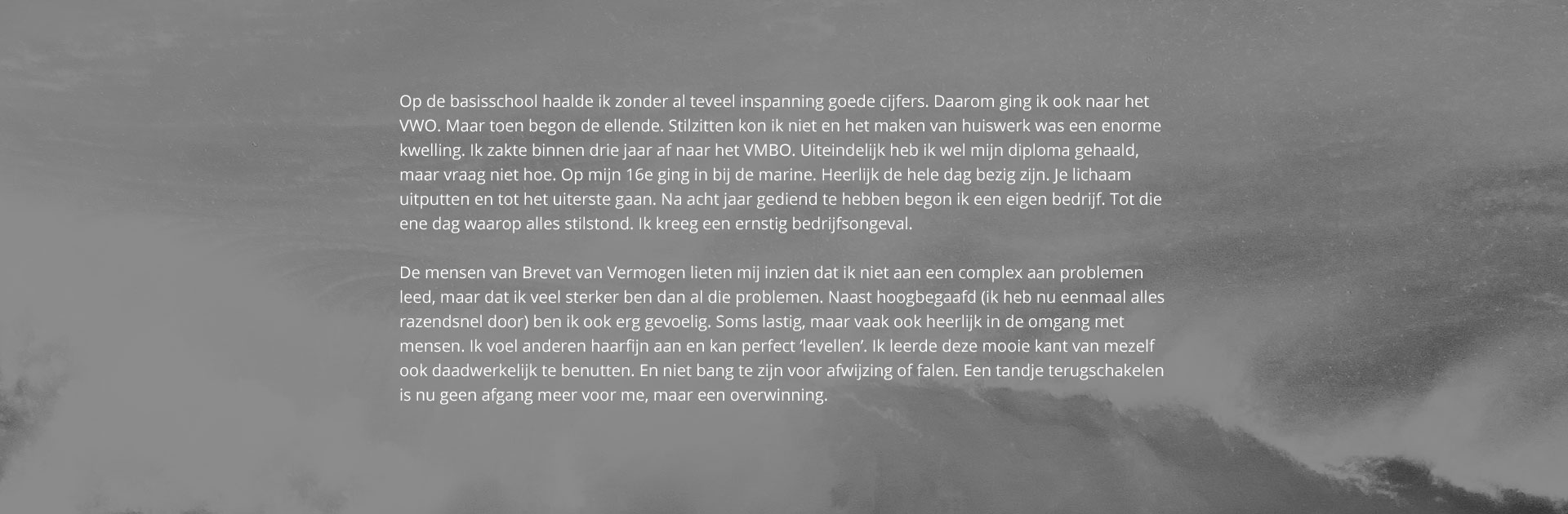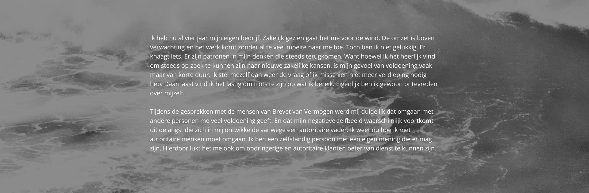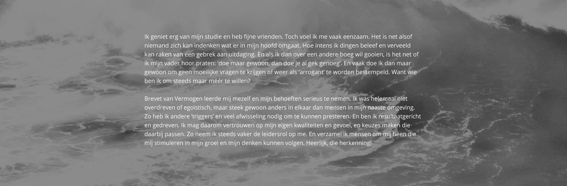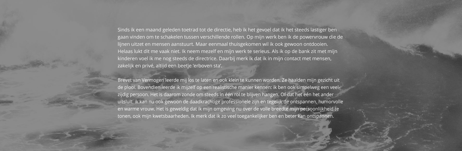 We gaan met je op zoek naar de remedie die bij jou past. Samen werken we aan zelfkennis, bravoure en zelfleiderschap. Door middel van gesprekken en oefeningen zoeken we naar de wijze waarop jouw vermogen omgezet kan worden in kracht. Praktisch en gericht op de toekomst. We weten dat de omgeving veel met mensen doet, daarom voeren we regelmatig gesprekken op inspirerende locaties. We vinden het belangrijk dat de context veilig is. Alleen dan kunnen er mooie gesprekken plaatsvinden. Daar steken we dan ook veel energie is.